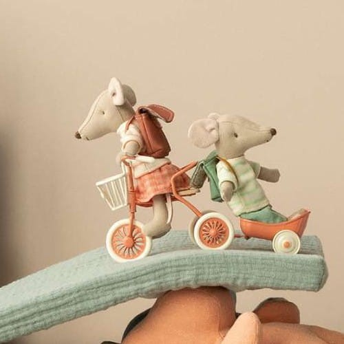 Maileg - rowerek trójkowy coral, Abri a tricycle, Mouse - Coral