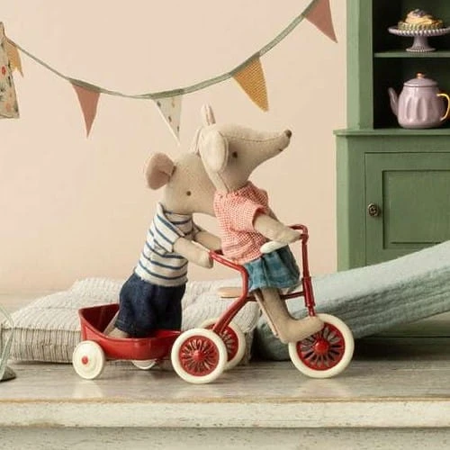Maileg - rowerek trójkowy czerwony, Abri a tricycle, Mouse - red