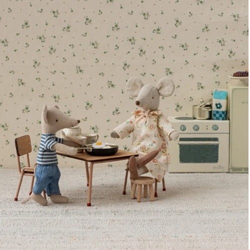 Maileg to świat, w którym pudełka zapałek mogą być łóżeczkami dla myszek a małe myszki księżniczki są idealnymi towarzyszkami podwieczorku. To świat, w którym koty i myszy są przyjaciółmi. Nasz to świat dziecięcej wyobraźni - i to jest świat, który cenimy. Myszki można dowolnie kompletować, tak aby stworzyć całą mysią rodzinkę. Można je schować w kieszonkę i zabrać wszędzie ze sobą.