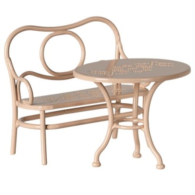 Maileg - Zestaw kawowy - różowy stół i ławka