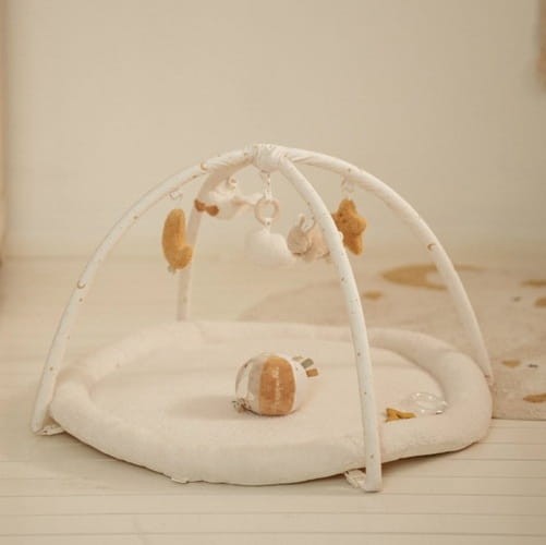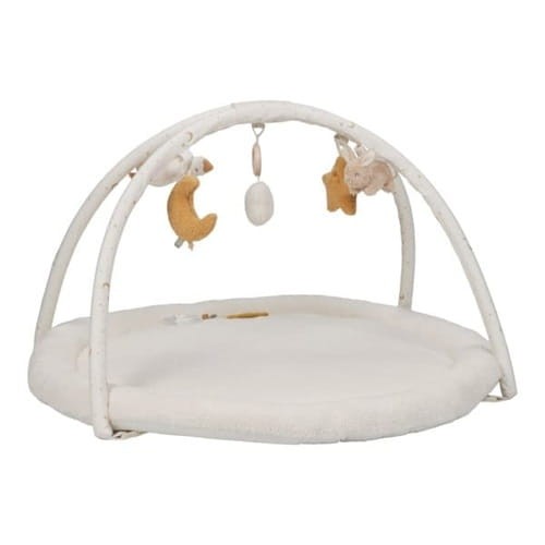 Mata dla niemowląt aktywizująca z pałąkiem od Little Dutch z kolekcji Newborn Naturals. Idealna dla najmłodszych dzieci już od narodzin. Mata z pałąkiem i zabawkami zachęci maluszka do poznawania świata w pozycji leżącej. Na takiej mięciutkiej macie, maluszek może leżeć i obserwować otaczający go świat. Mata jest bardzo puszysta i mięciutka, świetnie izoluje od zimnej podłogi.