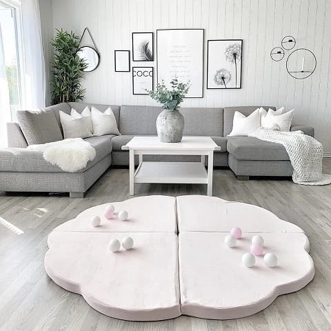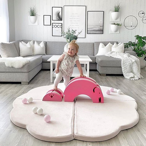 Mata do zabawy ma praktycznych zastosowań, sprawdzi się w roli dywanu lub może zostać ułożona pod basenem z piłeczkami lub namiotem tipi. Dzięki funkcji składania maty, w zależności od jej kształtu, możemy ułożyć ją w rogu pokoju lub podeprzeć o ścianę, w rezultacie możemy uzyskać siedzisko z oparciem, leżankę czy wygodny fotel. Za każdym razem mata do zabawy zapewnia bezpieczeństwo podczas zabawy maluszka.
