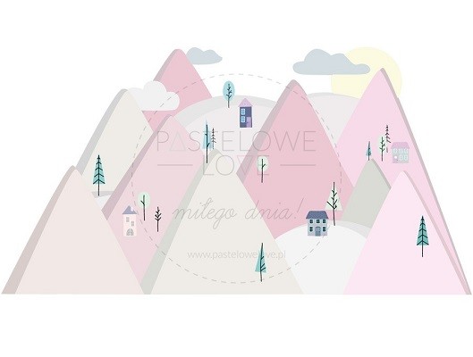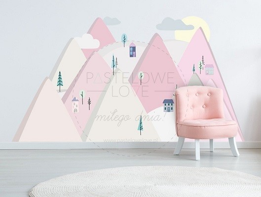 Naklejka na ścianę - góry w różowej kolorystyce..