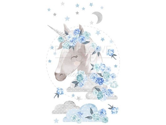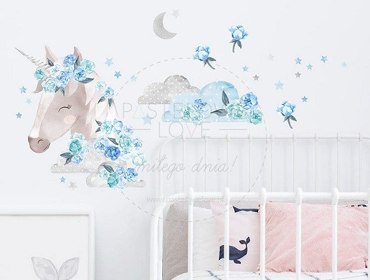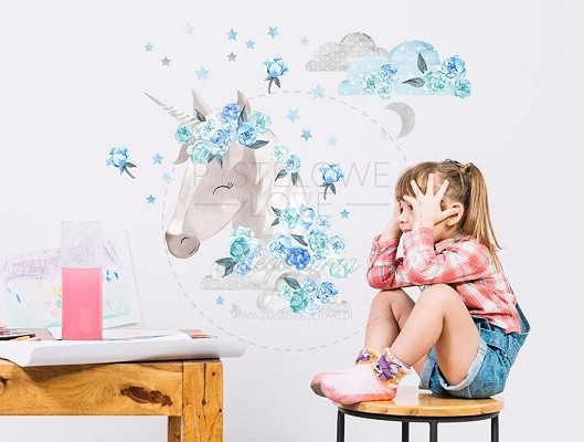 Naklejka ścienna - jednorożec niebieski.