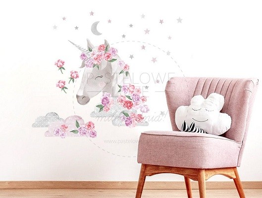 Naklejka na ścianę - jednorożec różowy