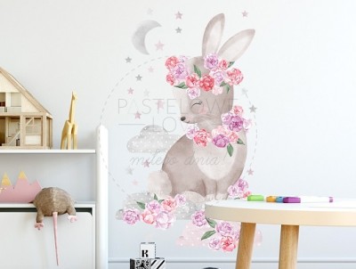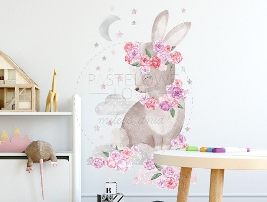 Naklejka królik różowy to część specjalnej kolekcji TAJEMNICZY OGRÓD, która powstała z myślą o wszystkich fanach leśnych zwierzątek i kwiatowych motywów. Sposób jej zaprojektowania był nietypowy: w pierwszym etapie powstały szkice całej kolekcji, w kolejnym pomalowane zostały one farbami akwarelowymi na specjalnym papierze, zaś na samym końcu, przy wykorzystaniu techniki komputerowej, przygotowane zostały materiały do druku. Ten zaawansowany proces sprawił, że cała kolekcja jest wyjątkowa pod każdym względem.