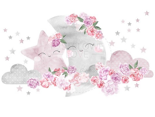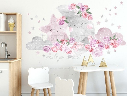 Naklejka ścienna - księżyc różowy.
