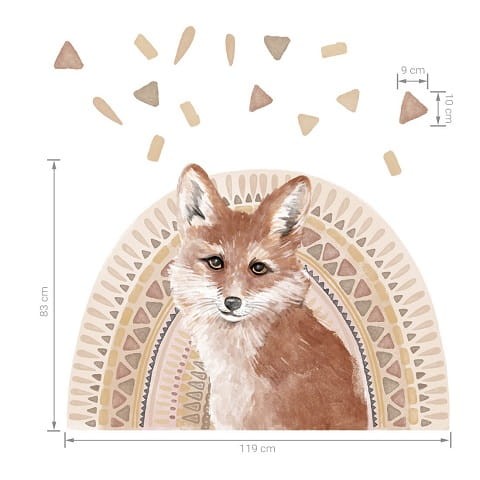 Naklejka na ścianę lis powstała z myślą o miłośnikach przyrody i natury. Idealnie sprawdzi się w pokojach małych odkrywców i miłośników leśnych zwierzątek. Naklejki w łatwy sposób pozwolą odmienić dziecięcy pokój w leśne królestwo. Delikatna, pastelowa kolorystyka zachwyci każdą dziewczynkę i chłopca.