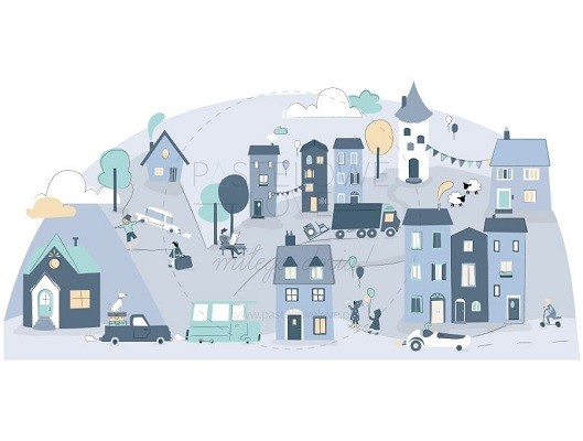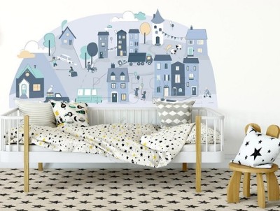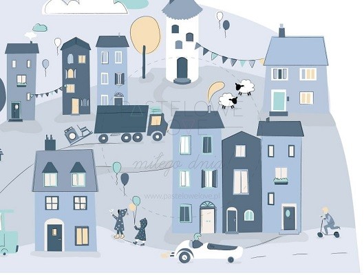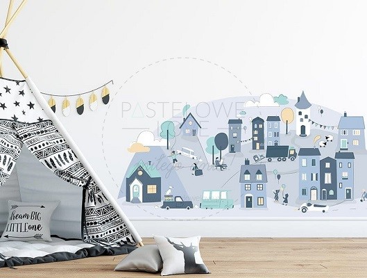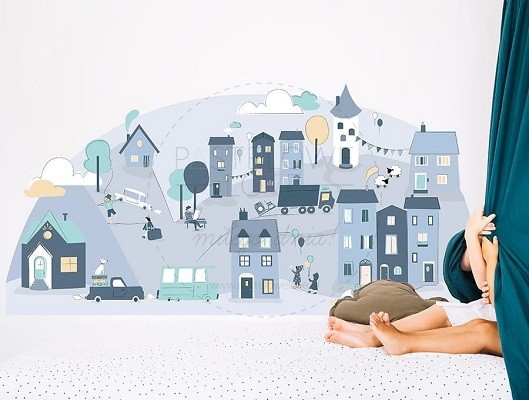 Naklejka na ścianę - miasteczko niebieskie