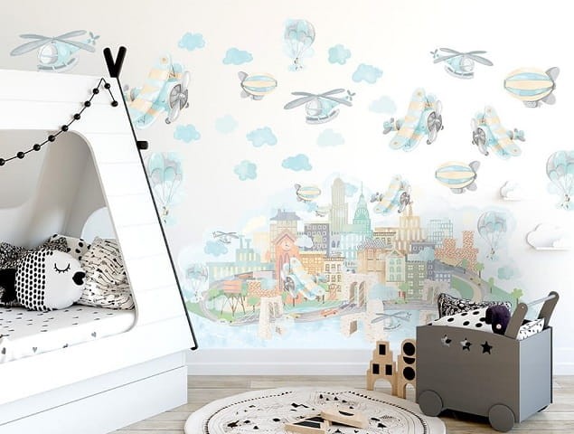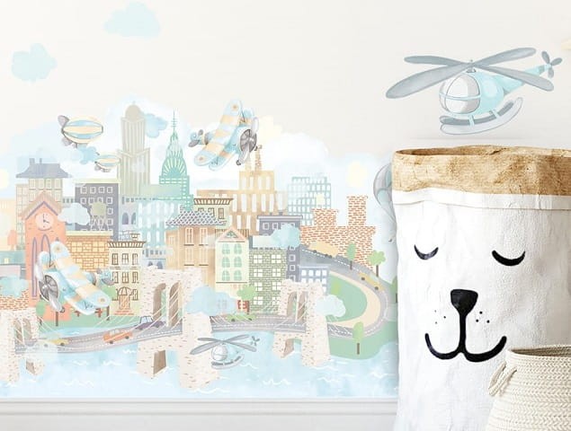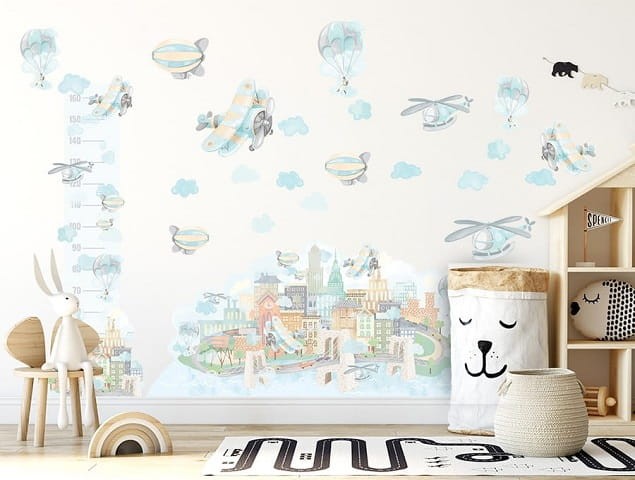 Naklejka na ścianę miasteczko samoloty powstała z myślą o małych fanach lotnictwa. Naklejki na ścianę w stylu skandynawskim to urocza dekoracja, która sprawdzi się w każdym dziecięcym pokoju. Wykonane z najwyższej jakości materiałów z dbałością o wszelkie detale. Polska produkcja.