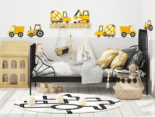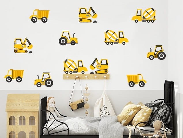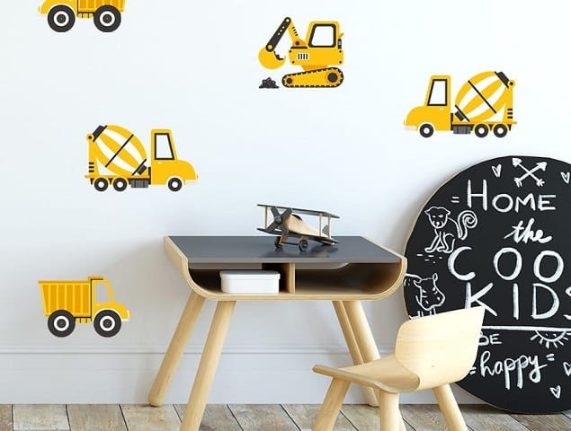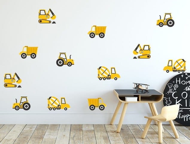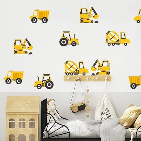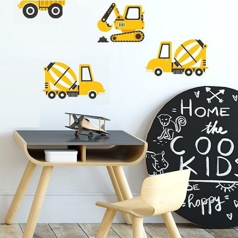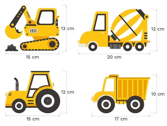 Seria naklejek dla dzieci pojazdy to propozycja dekoracji pokoju chłopca. Zamień pokój dziecka w prawdziwy plac budowy, dzięki serii naklejek, w których skład wchodzą: koparki, betoniarki, traktory i wywrotki.