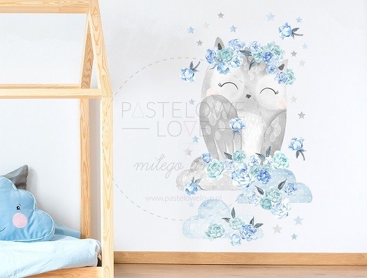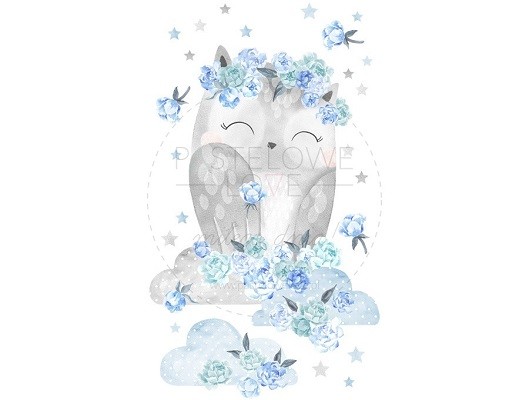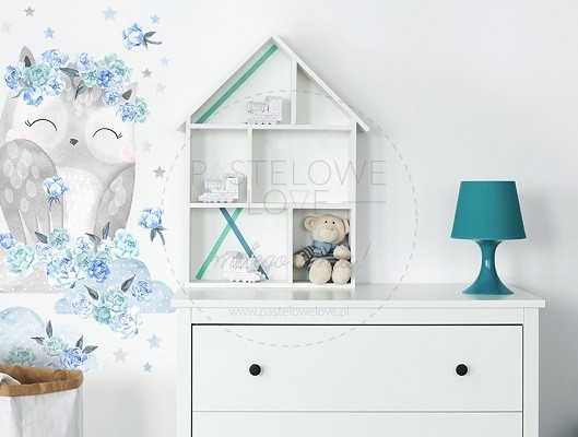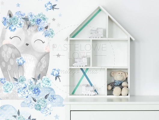 Naklejki sowa niebieska to część specjalnej kolekcji TAJEMNICZY OGRÓD, która powstała z myślą o wszystkich fanach leśnych zwierzątek i kwiatowych motywów. Sposób jej zaprojektowania był nietypowy: w pierwszym etapie powstały szkice całej kolekcji, w kolejnym pomalowane zostały one farbami akwarelowymi na specjalnym papierze, zaś na samym końcu, przy wykorzystaniu techniki komputerowej, przygotowane zostały materiały do druku. Ten zaawansowany proces sprawił, że cała kolekcja jest wyjątkowa pod każdym względem