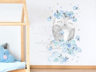 Naklejka na ścianę - sowa niebieska