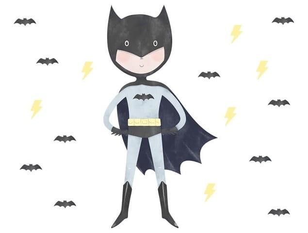 Każdy chłopiec marzy, aby byc super bohaterem i ratować świat. Dzięki naszej naklejce, dzieci niczym Batman, mogą zmienić się w kogoś innego i pod osłoną nocy, w czarnej pelerynie, łapać złoczynców.