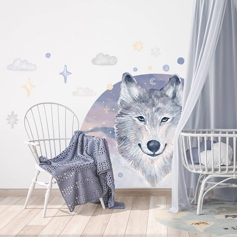 Naklejka na ścianę wilk powstała z myślą o miłośnikach przyrody i natury. Idealnie sprawdzi się w pokojach małych odkrywców i miłośników leśnych zwierzątek. Naklejki w łatwy sposób pozwolą odmienić dziecięcy pokój w leśne królestwo. Delikatna, pastelowa kolorystyka zachwyci każdą dziewczynkę i chłopca.