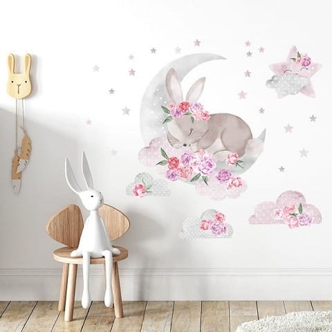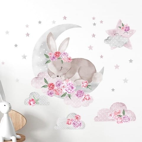 Naklejka ścienna śpiący królik różowy