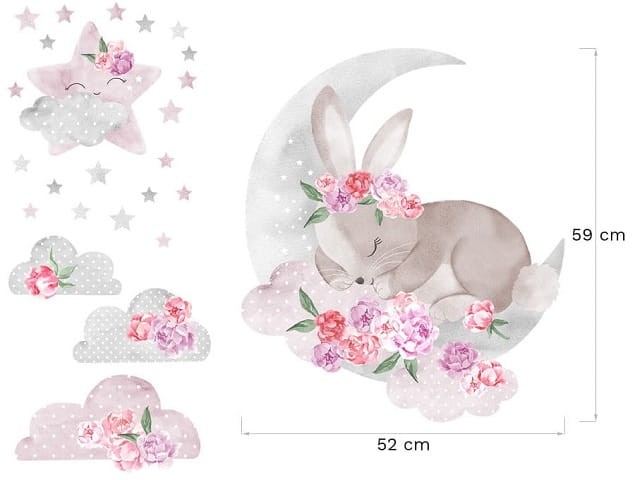 W skład naklejek śpiący królik wchodzą: