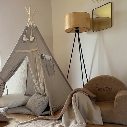 Namiot tipi to 'must have' każdego malucha i ulubione miejsce do zabawy. Tipi tanowi świetną przestrzeń do zabawy. Sprawdzi się zarówno podczas zabawy w domu jak i w okresie letnim, w ogrodzie czy na tarasie. Namiot tipi jest niezastąpiony podczas zabawy w 'chowanego, czytania książeczek czy wypoczynku maluchów. Pięknie prezentuje się w pokoju dziecka. Po zakończonej zabawie można go złożyć i przechowywać w pokrowcu. Idealny na prezent na roczek lub dla przedszkolaka.