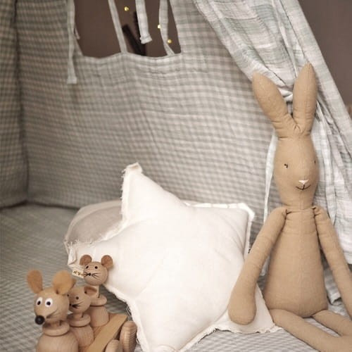 - naturalne materiały (drewniany stelaż, bawełniana tkanina z podwójnego muślinu)