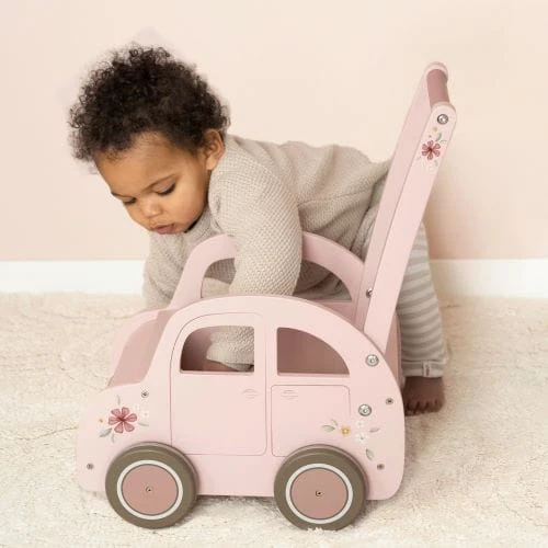 Pchacz - wózek różowy, drewniany Little Dutch