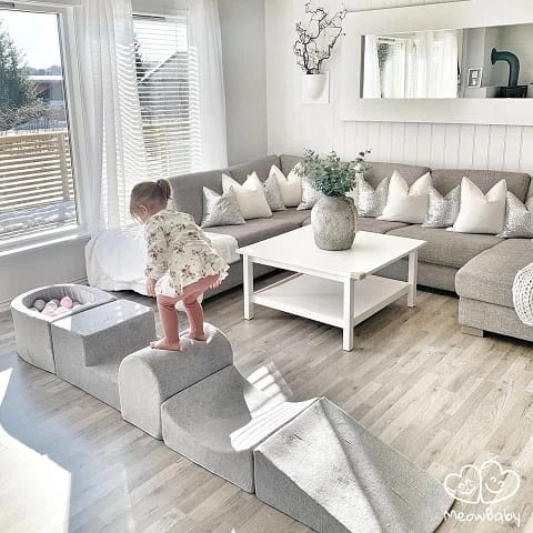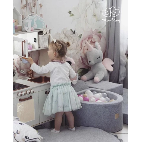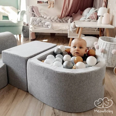 Piankowy zestaw do zabawy z basenem 100 piłek, Velvet jasnoszary MeowBaby