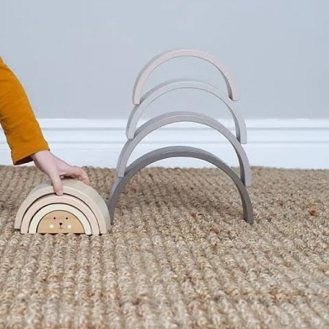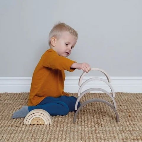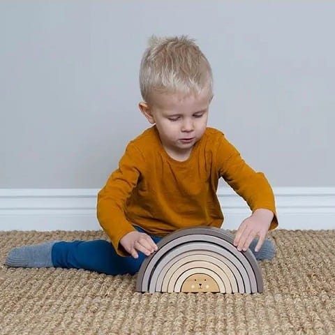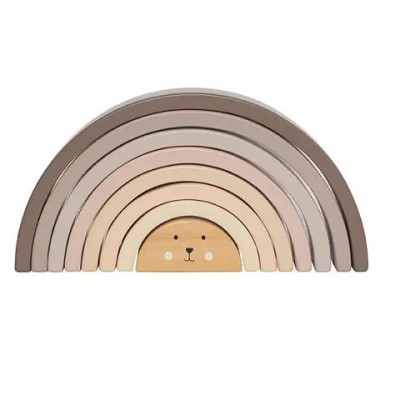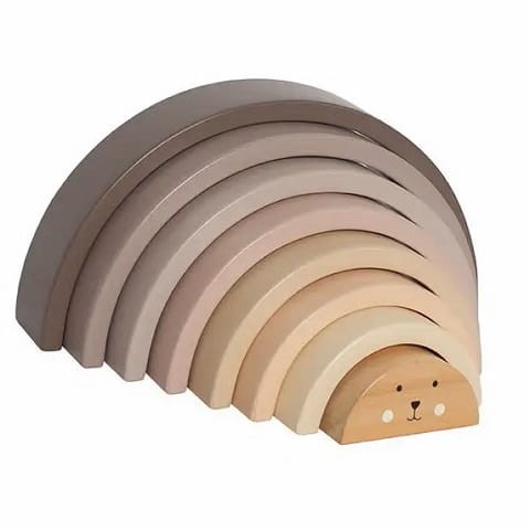 Drewniana tęcza w uroczych naturalnych kolorach ziemi. Idealna zabawka drewniana pobudzająca kreatywność zarówno dla najmłodszych fanów konstruowania, jak i trochę starszych. Skłąda się z ośmiu krążków w różnych odcieniach kolorystycznych i różnej wielkości.