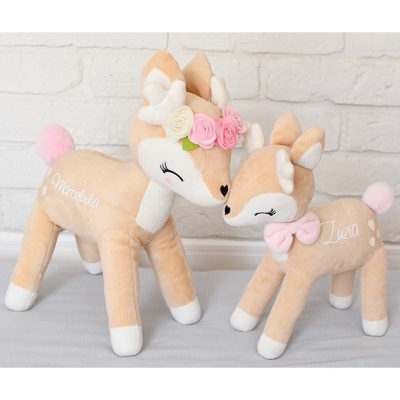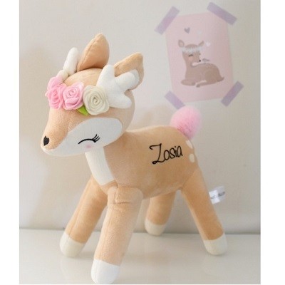Urocza i słodka, pluszowa sarenka z pastelowymi kwiatuszkami na główce i z milutkim ogonkiem to idealna przytulanka dla małej dziewczynki w każdym wieku. W wersji spersonalizowanej.