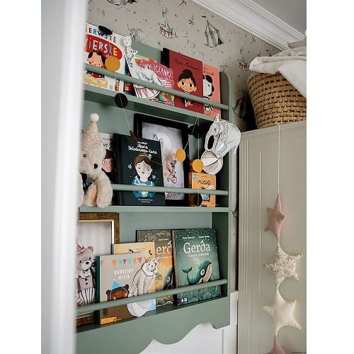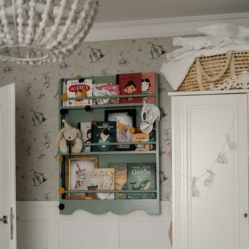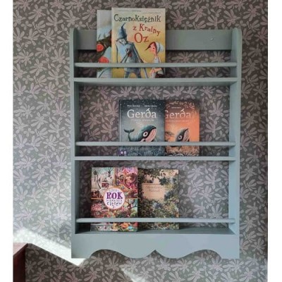 Półka biblioteczka wisząca do pokoju dziecka z rustykalnym dekorem