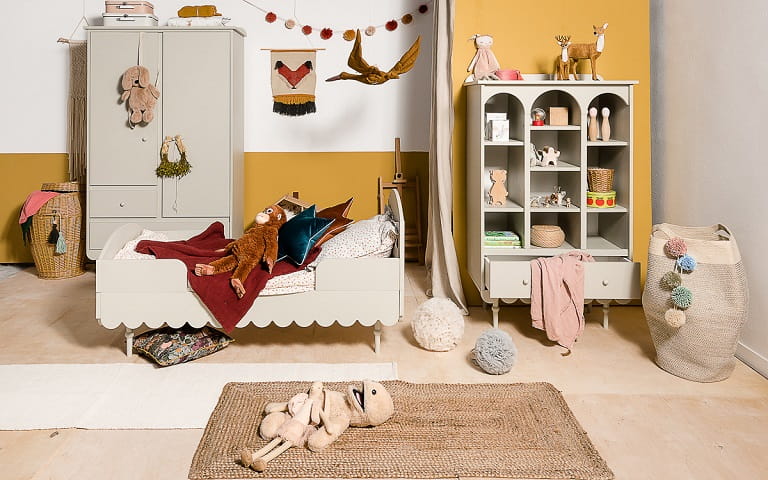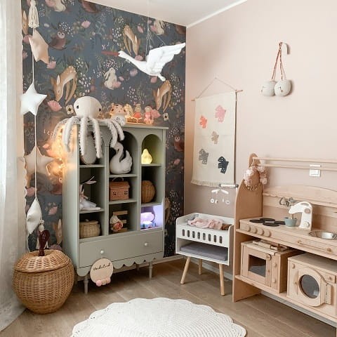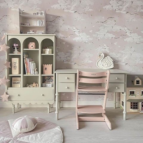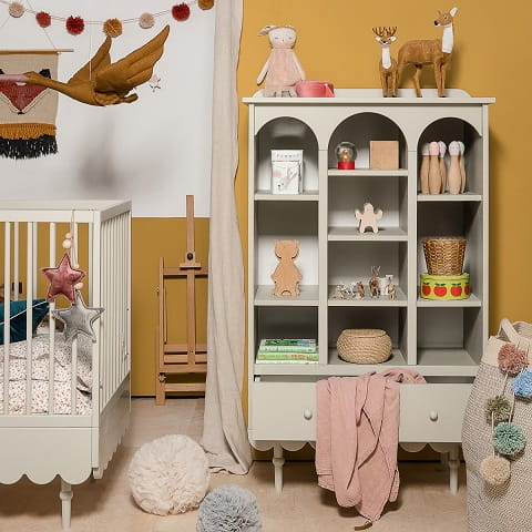 Regał Babushka będzie się pięknie prezentował w pokoju dziewczynki i chłopca.