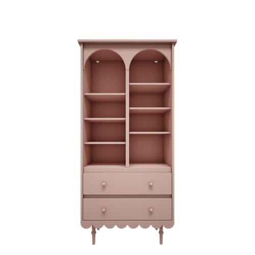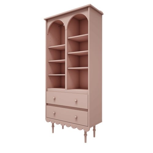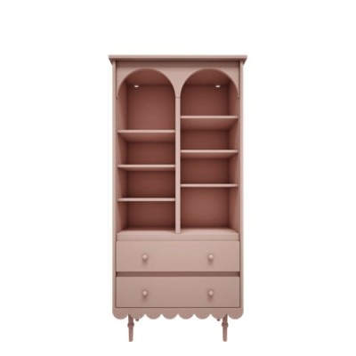Niezwykle urokliwy regał wysoki dziecięcy w stylu retro w kolorze różowym. Idealne miejsce do przechowywania książek, gier, puzzli znajdujących się w pokoju dziecięcym. Regał wyposażony jest w dwie szuflady wyposażoną w prowadnice z samodomykiem. Duża ilość półek zapewni świetne miejsce do przechowywania.