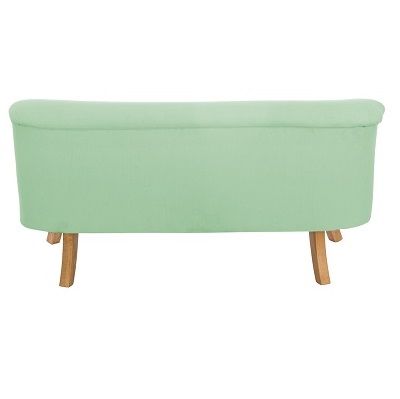 Sofa dla dzieci w kolorze miętowym. Materiał obicia - len polskiego pochodzenia.
