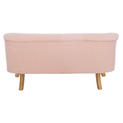 Sofa dla dzieci w kolorze pudrowego różu. Materiał obicia - len polskiego pochodzenia.