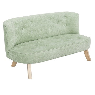 Sofa dla dzieci w kolorze brudnej mięty. Materiał obicia - tkanina welurowa