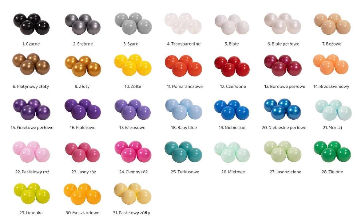 Do wyboru proponujemy aż 27 kolorów piłeczek: