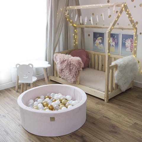 Suchy basen z piłeczkami (200 sztuk) pudrowy róż bawełniany MeowBaby