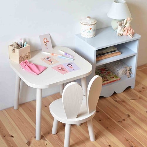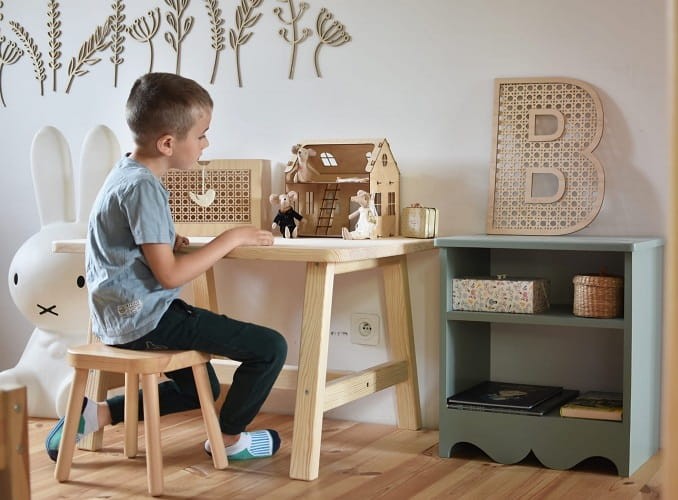 - odpowiednia pielęgnacja –Ważne jest też odpowiednie traktowanie. Mimo, że drewno jest materiałem odpornym na różne pomysły naszych pociech, pamiętajmy, że zawsze istnieje granica wytrzymałości. W trakcie użytkowania będą pojawiać się naturalne zarysowania, wgniecenia. Jest to naturalny proces związany z faktem, że drewno sosnowe jest drewnem miękkim. Wszystkie mebelki pokryte farbami wodnymi można przecierać mokrą ściereczką z dodatkiem delikatnych substancji myjących. Prosimy nie używać środków żrących, nie szorować blatów ostrymi myjkami, magicznymi gąbkami (istnieje ryzyko uszkodzenia powierzchni).