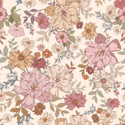 Cudowna, kwiatowa tapeta do pokoju dziewczynki. Cudowny i kolorowy wzór. Z dużymi, ale nie ogromnymi kwiatami. Odcienie musztardy, fuksji, cegły na beżowo-żółtym tle. Ten wzór jest uniwersalny, fantastycznie będzie się prezentował w pokoiku Maluszka, pokoju 4-5 letniej dziewczynki, pokoju nastolatka czy… sypialni rodziców, jeśli śpicie ze swoim Maluszkiem.