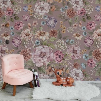 Tapeta do pokoju dziecka Wielki bukiet jasny fiolet