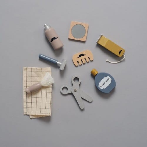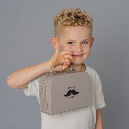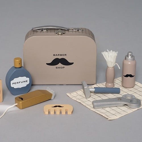 Walizka małego barbera, to idealny zestaw dla prawdziwego małego mężczyzny! z tym zestawem możesz otworzyć własny męski salon fryzjerski i wymodelować niejedną idealną brodę za pomocą: grzebienia, nożyczek, trymera i brzytwy, oczywiście z pomocą pianki i pędzla do golenia.