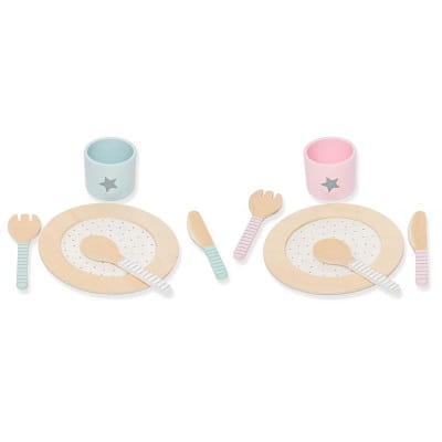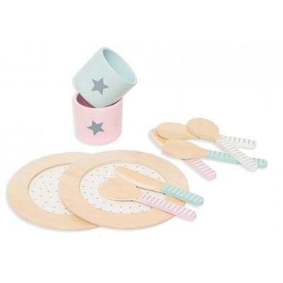 Drewniane naczynia do zabawy wyróżniają się piękną i pastelową kolorystyką. Akcesoria mają różowo-błękitną oprawę w delikatne wzorki, dzięki której skupiają wzrok i zachęcają do użytkowania. Staranne wykonanie drewnianych naczyń do zabawy sprawia, że idealnie nadają się na prezent dla każdego przedszkolaka. Szczególnie że stanowią uzupełnienie pozostałych akcesoriów kuchennych - również dostępnych w naszym sklepie.