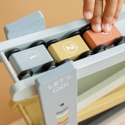 - Obserwowanie pędzących autek uczy zależności przyczynowo-skutkowych oraz rozwija śledzenie wzrokiem (koordynacja oko-ręka).