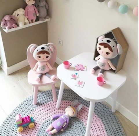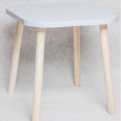 Drewniany stolik dziecięcy Bambooko dostępny w kilku pastelowych kolorach. Idealnie pasuje do krzeseł w kształcie królika.
