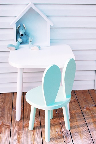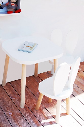 Stolik dla dzieci w całości wykonany jest z drewna sosnowego. Jest bezpieczny i trwały - do malowania użyto hipoalergiczne farby posiadające specjalne atesty zapewniające bezpieczeństwo zabawek. Stolik idealnie pasuje do krzeseł w kształcie królika (dostępne osobno lub w zestawie). 100% handmade. Przy zamówieniu można samodzielnie określić kilka dostępnych opcji, dzięki czemu stolik będzie idealnie dopasowany do Państwa oczekiwań.