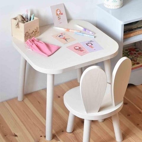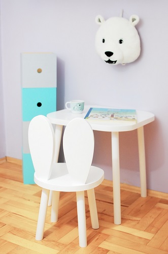 Zestaw - drewniany stolik dziecięcy + 1 sztuka krzesełka Królik Bambooko