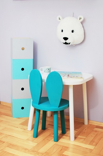 Stolik i krzesełko Króliczek dostępne są w kilku pastelowych kolorach, do wyboru: